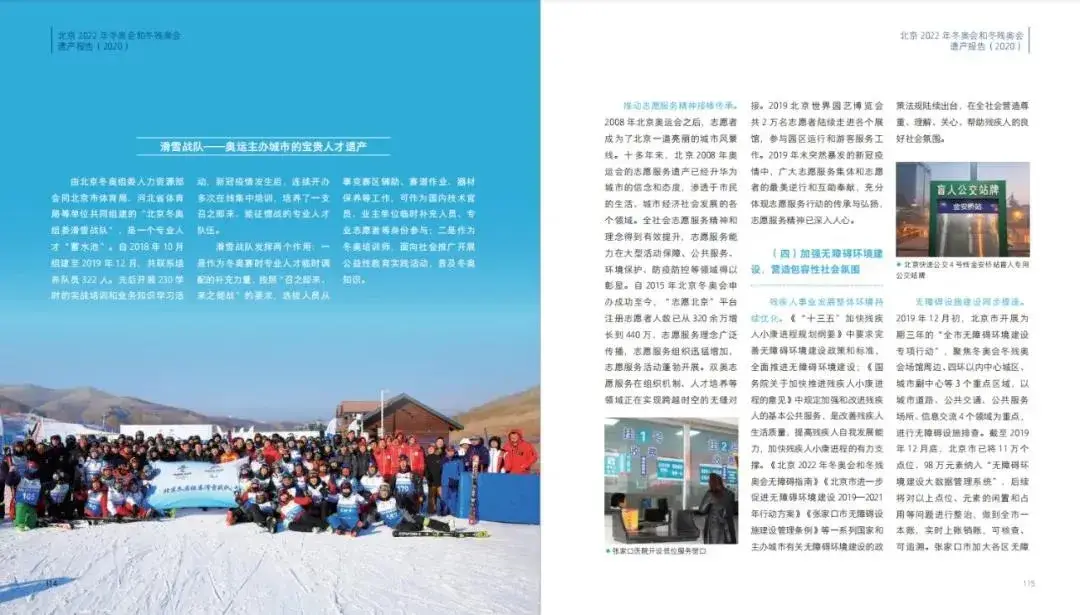 为系统总结北京冬奥会遗产成果,受北京冬奥组委的委托,北京体育大学会同北京冬奥组委总体策划部共同编制完成了《北京2022年冬奥会和冬残奥会遗产报告(2020)》中文版和国际版。报告以图、文和专栏的形式总结提炼了北京冬奥会自2015年申办成功以来筹办工作所形成的遗产成果,重点呈现了促进中国冰雪运动普及发展,超前谋划场馆赛后利用,持续提升京张地区生态环境,促进京津冀地区协调发展,主办城市转型发展,引领社会文明进步。